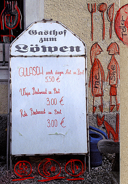 Ja und seitdem bin ich gerne im Löwen bei der Christa, bekomme alles mit, informiere sie, werde in erlesenen Momenten an den Stammtisch geladen. Und mit einer Freundin aus dem Nachbardorf gehe ich jeden Mittwoch zur Christa zum Essen. Es ist unsere heilige Pause, wenn die Buchbindemeisterin was Kräftiges zum Essen braucht und die Künstlerin Geschichten sammelt.
