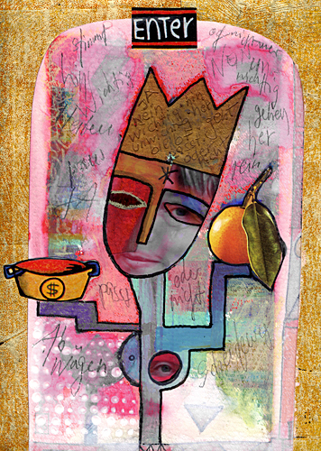 Bei mir gehört mein Malsach dazu, der Computer, der Lagerraum für die Bilder anstelle des Stalls. Was ist mein Vieh, was sind meine Hühner? Dort gibt es kleine Opferschalen für die Hausgeister, damit mein Wirken fruchtbar ist. Wenn ich etwas wissen will, orakle ich mit der Asche, der Substanz, die zu Brigid gehört, der Frühlingskünderin, die mit dem Feuer verbunden ist. Fragen zur Ernte, Segen für das Jahr. Das B von Brigid steht über meiner Haustüre, K+M+B, die drei alten X der Bethen, das, was die heiligen Drei Königinnen am Perchtentag über die Türe zeichnen.