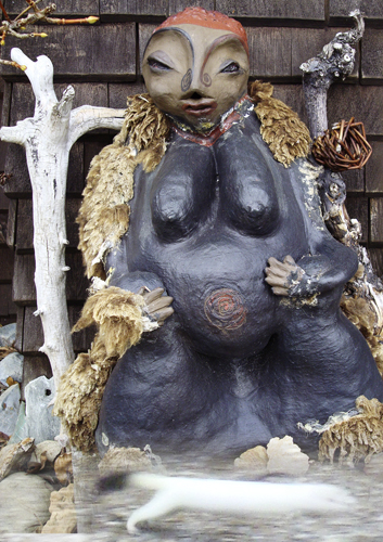 In den Bergen bei Ursula Kaiser, einer uralten Freundin, mit der ich ganz neue, alte Wege wiedergefunden habe. Sie hat mir früher Zaubergärten gezeigt und wie ich Skulpturen formen kann. Mit ihr habe ich Trommelsessions auf Kochtöpfen gemacht und in Regentonnen gebadet. Alltag zelebriert. Jetzt bestaune ich wie sie Wohnorte für Geister macht und die Spirits einlädt, Platz zu nehmen in den geheimnisreichen Figuren. Die Wildtiere um die Hütte zupfen sich etwas ab vom Fell der Wölfin, die Wesenheiten innen essen mit uns Kässpatzen.