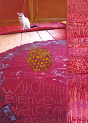 Das Feuer der Herzenskriegerin – wir warten auf die Frauen. Es ist kein Hermelin diesmal, sondern das Bärli. Weiße Tiere mit Schwarz im Schwanz begleiten mich im Moment. Wir haben alles bespielt und bereitet.