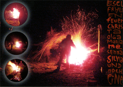 Mit den Eselfrauen haben wir am Wochenende ein riesiges Feuer gemacht und den Winter noch einmal verabschiedet. Herbstzweige, Winterbretter, alte Zäune, Feuer besungen, den Sternenhimmel des Frühlings begrüßt, erzählt und den Duft der Frühlingsnacht eingeatmet. Es gibt da die Frauen, die nur mit Holz heizen, eine von der Feuerwehr und die Bäuerin – sie gehen viel vorsichtiger um mit dem Feuer, dem Funkenflug als Olga mAria und ich. Unser leichter Sinn, der das Feuer gut anfacht und die Vorsicht, die es gut hütet.