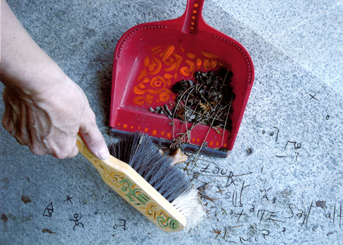 Ungebrochene Lust auf Ausmisten, Fegen, Reinigen. Kehren ist da die einfachste Art. Hinauskehren, was winterverstaubt ist und Zeit zu gehen. Früher wurde den Toten nachgekehrt, wenn es Zeit war, dass sie endgültig gehen. Ich streue gerne Salz in die Ecken im Frühjahr und fege alles aus. Kehren, fegen, zusammenkehren als sammeln, mich mit dem Kehricht beschäftigen – lauter zauberkräftige Handlungen, die ich mit meiner Großmutter und den alten Frauen in Spanien verbinde, weil sie auf diese Weise damit umgegangen sind.