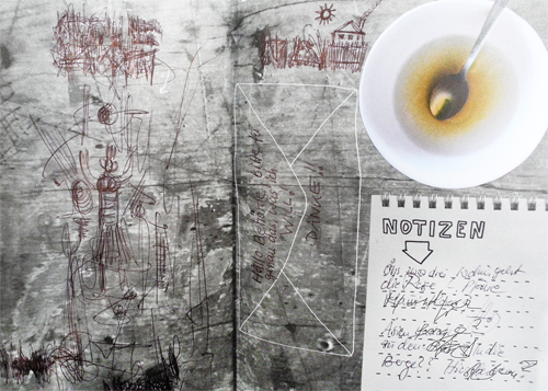 Weil ich zu Hause arbeite und mir der Weg vom Bett zum Atelier zu kurz ist, lasse ich mir Wegerweiterungen einfallen. Es fühlt es sich gut an, mich umzuziehen, rauszugehen, Leute zu treffen, Wetter zu spüren und zum Arbeiten neu zurückzukommen. Licht, Bewegung, Zeit ausserhalb des Hauses bringen mich über die Schwelle ins Schaffensfeld.