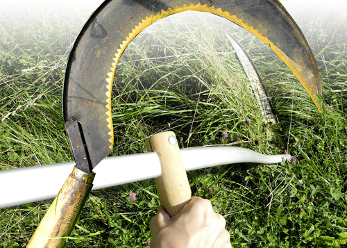 Die Sommerfülle feiern. Die Sense, sie gibt mir beim Schnittern eine Ahnung von der Lebensfülle – Farben, Blumen, Früchte – und vom Ende des Sommers. Ich sehe das Bild der Tödin mit der Sense, rieche den Duft der Maht, koste die Winternahrung für das Vieh. Ich binde mir einen Kranz und schmücke mich mit Beerenketten.
