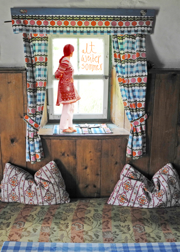 Gestern auf der Glentleiten im Freilandmuseum mit all den Bauernhäusern, den Almen, dem Kochelsee unten, den Bergen. Ein Teil meiner Wurzeln sind bäuerliche. Das Berglerische ist mir vertraut und während ich auf dem Bankerl sitze und in die Berge schaue oder in den Küchen an den alten Feuerstellen, kommen viele Bilder zu meinen Vorfahren. So haben sie auch gelebt, so hat es in der Kuchl meiner Großmutter auch ausgesehen, so klein und gemütlich, so einfach und heimatlich. Ganz tief nehme ich meine Ahnenwurzeln wahr. Ich bin eine ganz einfache Frau – die Wurzeln sehe ich hier, in den Bergen, auf dem Land, bei den Tieren. Eine kapriziöse Frau bin ich auch, aber das sind die Wurzeln aus einer ganz anderen Ahnenlinie und wenn ich die beiden Frauen nebeneinander auf dem Bankerl in der Abendsonne sitzen sehe, dann gibt das ein ganz merkwürdig komisches Bild.