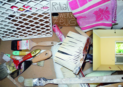 Ritualwerkzeug braucht es nicht viel, alles liegt in einer Kiste im Keller bereit – Pinsel, Waschel, Spachtel, Malkleidung.