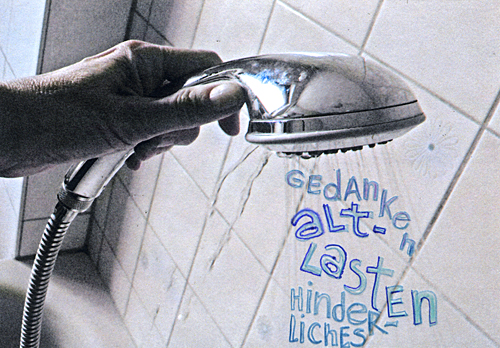 Wenn was schwierig war oder ein ganz anderer Abschnitt ansteht am Tag, gehe ich gerne zu einem Reinigungsort im Haus, einem Waschbecken und spritze dreimal Wasser über Hände, Gesicht und Haare. Von irgendwoher habe ich das mal mitgebracht, keine Ahnung, vielleicht ist es eine Mixtur. Damit kann ich gut und schnell was beenden, abfliessen lassen und einen Schritt herausgehen. Loslassen, was nicht zu mir gehört oder was Zeit ist, dass geht.