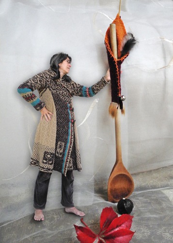 Es klingelt und ich bekomme Post. Eine große Schachtel mit Schokikugeln, Bitterkräuter, und einem Kochlöffel im warmen Reisemantel. Zwei befreundete Künstlerinnen, Andrea Michel und Brigitte Schwarz haben mir die Zauberporst aus dem Norden geschickt.