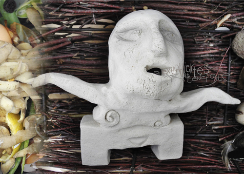 Ich erinnere mich an eine alte Tonfigur, die ich vor langer Zeit getöpfert habe. Sie ist auf einmal umgefallen und es war klar, dass sie eine Art Mülleimer für geistigen, feinstofflichen Abfall ist. So, als würde sie alles einatmen, eine Art Abfallfresser, geistiger Krankheitsfresser. Ich hole sie wieder heraus, denn es gehört zur Müllentsorgung. Das bewusste Entsorgen der Ausscheidungen in Ritualen, Sitzungen geht mir manchmal ab. Wohin mit all dem, was wir reinigen, abziehen, extrahieren? In die Luft werfen? Dann fliegt es rum und landet halt irgendwo. Also eine geeignete Kompostierstelle suchen für feinstoffliche Abfälle. Mein Abfallfresser ist schon mal ein guter Anfang.