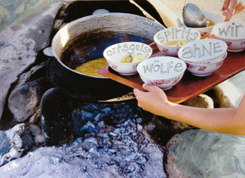 Wir machen die Zeremonie abends im Essraum, der schöne, große Seminarraum bleibt leer. Dort, wo wir kochen, essen, Katzen füttern, Alltägliches miteinander teilen, da soll das Ritual sein. Am Kachelofen, auf den Esstischen. So kenne ich es von den Reisen und es ist auch ein bisschen so wie in der Jurte. Schnelle Wechsel, das Trommeln kurz unterbrechen für Anweisungen, ganz schnell wieder drin sein und in Trance gehen. Tungaas Ahnengeist gefällt mir, er ist witzig, manchmal lacht er schallend. Eindrücklich ist es, wie Tungaa die Geister des Landes, ihrer Ahnen, des Ortes, der Himmel anruft und wie kraftvoll ihre Trommel ist. Zeit hebt sich auf, es geht in die Nacht, unsere Spirits sitzen miteinander am gedeckten Tisch und speisen, bis Tungaa sie wieder verabschiedet. Kaum ist die dreistündige Zeremonie zu Ende, bringt Nara die Teigtaschen in die Küche und es wird gekocht. Alle haben am Nachmittag mitgekocht und so ist unser Nachtessen köstlich, erheiternd.