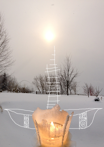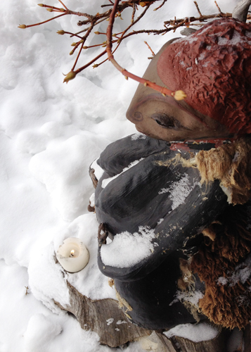 Brigid – Lichtmess auf der Hütte in den Bergen gefeiert mit Ulla und Miri. Bekräftigt, was uns wichtig ist, durch das Tor geschickt, aufs Lichtschiff gesetzt, wofür wir gehen wollen. Beim Hollerbusch im Schnee drei Kerzen, ein weißes Süppchen dazugestellt, eine Teeblume bestaunt, gelacht, geteilt, gefeiert. Gabriele, eine Freundin aus dem Havelland erzählt, dass ihre Kühe jetzt zu Lichtmess anfangen zu kalben und sie erinnert mich daran, dass es eine gute Zeit ist, Filze und Wolle zur Mottenverabschiedung in die klirrende Kälte zu hängen.