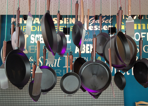 Begegnungen, Bilder, Eindrücke – ich bringe viel mit im Gepäck. An der ersten Raststätte auf dem Weg ins Museum hängen lauter Küchensachen von der Decke, die Wände sind voller Wörter aus dem Nahrungsbereich und das Auto ist auch voll mit Küchengeräten. Es ist wie eine Verdopplung.