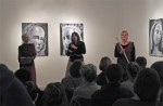 zu sehen sind die Schamani auf dem Tisch mit ihrem Löffel, die Medizinen, Kim Engels bei der Laudatio, wir, Mea v. Eyb und Inga Degenhart, Sylvia Kirchherr und ich, die Madonnen im anderen Stockwerk, in dem wir eröffnen, weil so viele Leute da sind, das Museum durch die blauen Bommel von Katharina Wöhrmanns Lampe betrachtet und noch einiges. Elke Schmidt hat uns fotografiert. Jetzt sag ich erstmal gar nicht mehr dazu, weil ja die Bilder so viele sind.