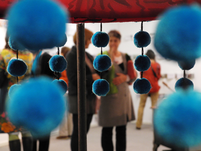 zu sehen sind die Schamani auf dem Tisch mit ihrem Löffel, die Medizinen, Kim Engels bei der Laudatio, wir, Mea v. Eyb und Inga Degenhart, Sylvia Kirchherr und ich, die Madonnen im anderen Stockwerk, in dem wir eröffnen, weil so viele Leute da sind, das Museum durch die blauen Bommel von Katharina Wöhrmanns Lampe betrachtet und noch einiges. Elke Schmidt hat uns fotografiert. Jetzt sag ich erstmal gar nicht mehr dazu, weil ja die Bilder so viele sind.
