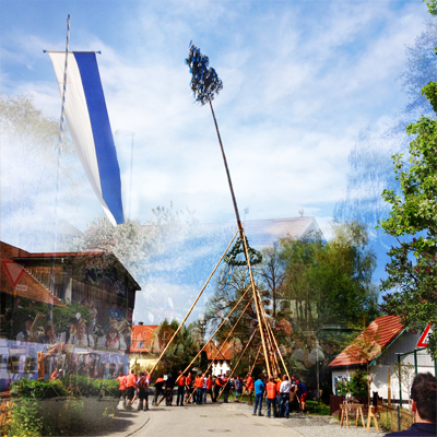 Weiß-rot-schwarz geht bei dem bayrischen Bild nicht, weil der Himmel und die Fahne und die Bänder am Maibaum blau-weiß sind. Eine Ausnahme.