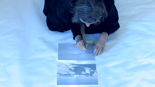 In die länger werdenden Tage hinein ist aus den Fragmenten ein Winterfilm entstanden. Er ist der Zeichnung gewidmet, dem Schwarz-Weiß. Wobei das Winterweiß ja seine Farbe wechselt, ins Bläuliche oder Gelbliche, je nachdem, wie es mit dem Licht in Verbindung geht. Auch davon erzählt der Film. Und von Strichen, Linien, Zeichen, von Monochromem, Überlagerungen, Transparenzen, Kontrasten.