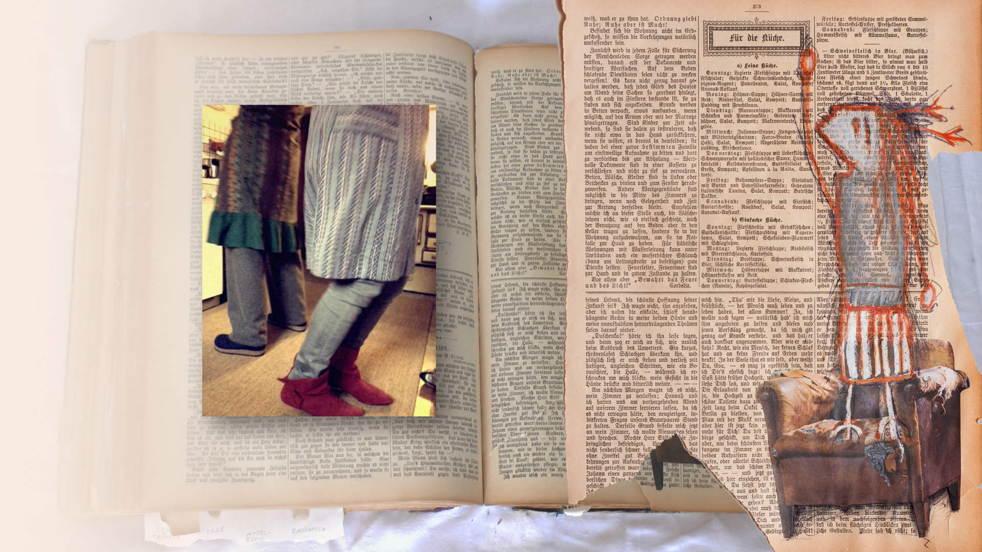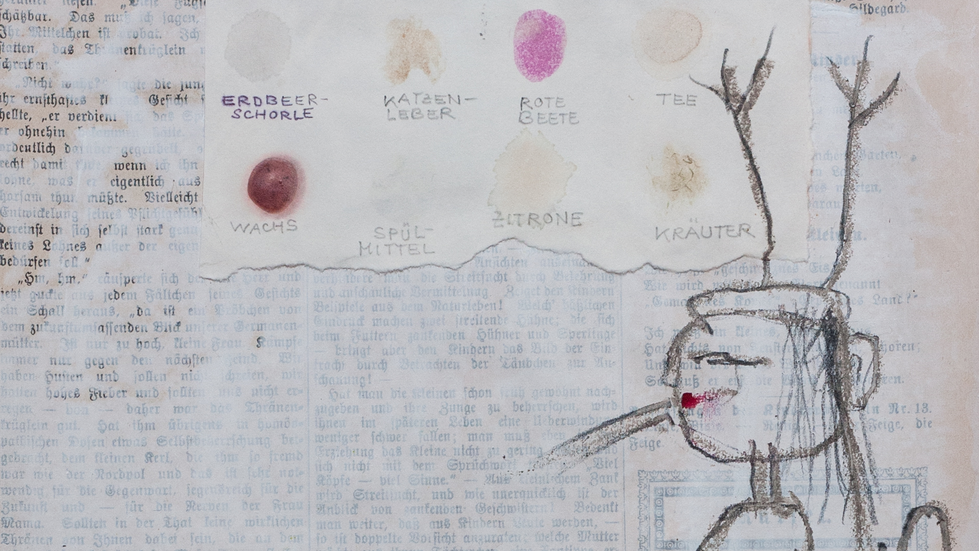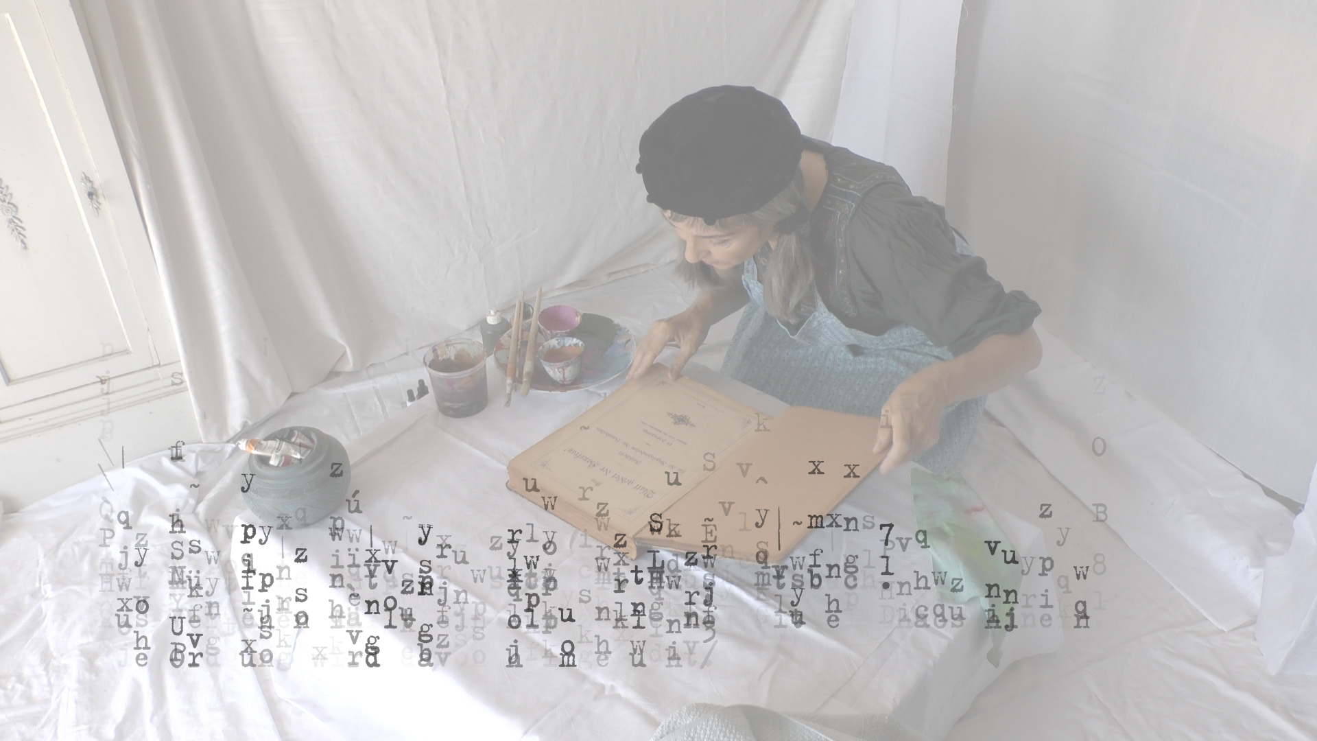 Ursprünglich war es gar nicht so gewollt, aber auf einmal hat sich das Thema des ersten Filmes Schamaninnen, Hausfrauen und andere Merkwürdige nach vorne und in den Film hinein geschoben. Es spannt den Bogen zum Geist der Anfängerin, dem Ausprobieren, dem Spielen. Der Schwerpunkt hat sich verlagert auf „andere Merkwürdige“. Ich werde von Schraten, Schrättlis, Hausgeistern und anderen besucht. Sie bringen seltsame Geschichten mit, wollen portraitiert werden und Kontakt. Das ist die Geschichte. Fündig geworden im Restmüll. Wertstoffschätze im Wertstoffhof. Von dort ins Atelier, von der Sortierstation in die Wandelstation. Reinschmieren, weißeln, Zahlen übermalen. Ist das ein Wertschätzungsakt? Rumschmieren. Was, wenn es nur mehr E-Books gibt? Am besten so lange buchenthemmt agieren, solange es noch Bücher gibt. Knautschen und reißen, was das Zeug hält. Geheimnisse am Schürzenrand und an geheimen Buchorten finden. Den Geistern gefällt das Klecksen. Müllschrate und Substanzenschrättlis im Gespräch