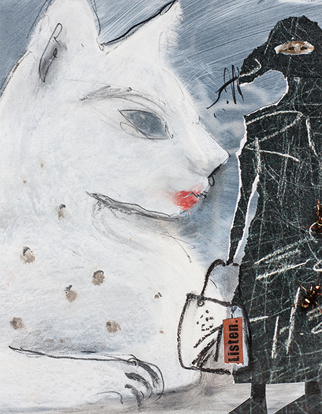Unter den Yōkai gibt es einige Katzenwesen. Die Geisterkatze Kaibyō, die Bakeneko oder die Glücksbringerin Maneki-neko. Sie ist die Winkende Katze, die es tausendfach als Figur gibt und die in Häusern, Restaurants und Läden steht, um das Glück herbeizuwinken. Sie ist die Wiedergeburt der Göttin der Gnade, Kannon. Es gibt auch den Tempel der winkenden Katzen. Im Kabuki-Theater wird die Bakeneko traditionell weiblich dargestellt. Die Verbindung von Katze, Frau, Gestaltwandel, Tod und Feminismus erzählt für mich von einer uralten Geschichte, in der alle Kräfte in Verbindung waren, in der Menschen verbunden waren mit der Wildnis, mit den wilden, schönen Landstrichen ihrer Seele, mit dem Tod, mit der wildweisen Närrinkraft. Die Nekomata entspringen den Hauskatzen. Wenn diese sehr alt oder sehr gewichtig geworden sind, können sie Nekomata werden. Sie sind zauberkundig, verwandeln sich manchmal in alte Frauen und haben mehrere Schweife. Nekomata hat man sich seit der Edo-Zeit sogar tätowieren lassen und auf Kleidern abgebildet.