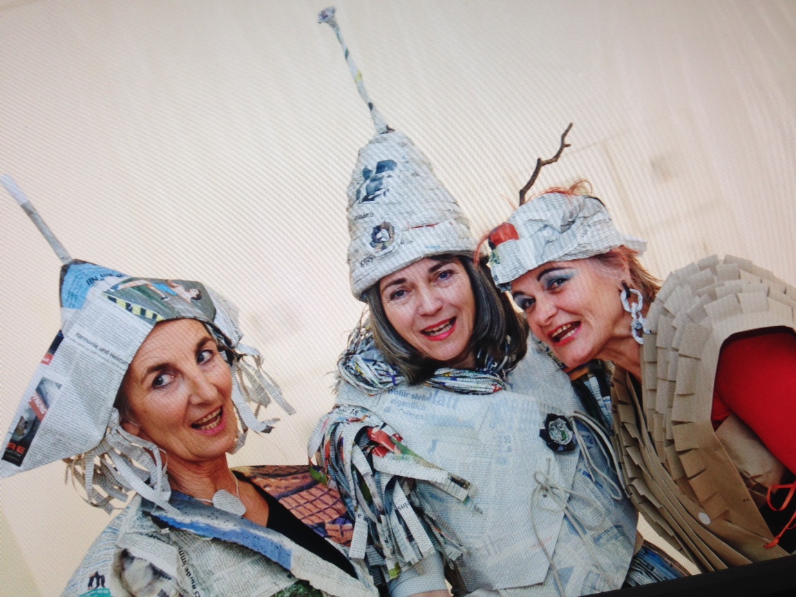 Mea, Inga und ich haben geschrättl-talked, sind im Aufzug vor lauter Aufregung fast ohnmächtig geworden, haben uns gefragt, wie wir uns nur in diese Situation bringen konnten. Das fragen wir uns jedesmal wieder. Die Momente kurz vorher sind ein bisschen wie Sterben. Und nachher sind wir erleichtert und stolz auf uns und voller Lust auf ein Weiter. Die Fotografin Melissa Messerschmidt hat uns sehr fein bespasst beim Fotografieren und ganz viel an Aufregung weggenommen. Das Foto von uns Dreien ist von Melissa.