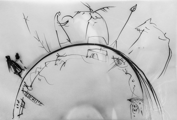 Jede Geschichte kann aus jeder der vier Richtungen betrachtet werden, aus der Richtung der Weisheit, der Unschuld, des Weiten Blicks und des Innenblicks. Je nachdem, welche Position ich einnehme, sehe ich andere Möglichkeitsbündel. Es ist das Beste, was mir im Moment einfällt, Positionswechsel, ums Rad gehen und alles betrachten.