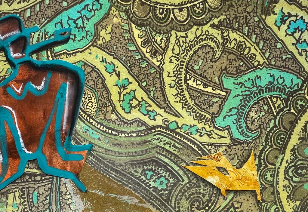 „Geschenkt“, sagte sie und schon hatte ich dieses verrückte Teil. Es duftete nach Hippiezeit und erinnerte mich an die Songs und die wilden Feste. Puff the magic dragon – tanzen, philosophieren, lieben, Musi machen, Nächte durchwildern. Schlaghosenweit flatterte das Teil im warmen Maroccowind. Ein bisschen verdrehten sich die Augen beim lange Hinschauen und es war nicht so ganz klar woran es lag, am Muster oder am Rauch. Später haben wir das Dragon-Lied umgeschrieben und gesungen:
