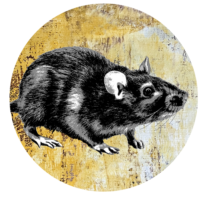 Auf meine male ich eine Ratte unterm Regenbogen. Sie wäre eine gute Begleiterin. Als Tier der Göttin Kali, als kreative Überlebenskünstlerin. In der Dunkelheit, im Untergrund ist sie eine uralte, erfahrene Fährtenleserin. Mutig, zärtlich und hoch sozial, instinktsicher und intelligent. Eine, die was von Gemeinschaft versteht. All das dürfte sie mir immer wieder einblasen, wenn ich abdrifte.