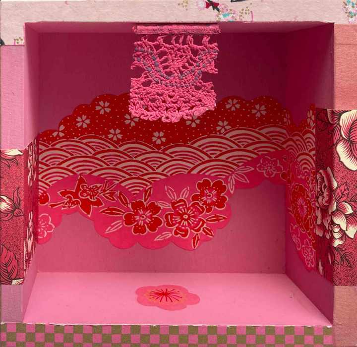 Als Künstlerin möchte ich keine solchen Berührungsproblematiken haben. Mit Automarken wärs mir egal, aber nicht mit Farben. Deshalb mache ich einen Rosen-Rosa-Rot-Schrein. Nicht zu groß, so, dass ich ihn schnell verräumen kann. Zumindest im Anfangsstadium meines Desensibilisierungstrainings.