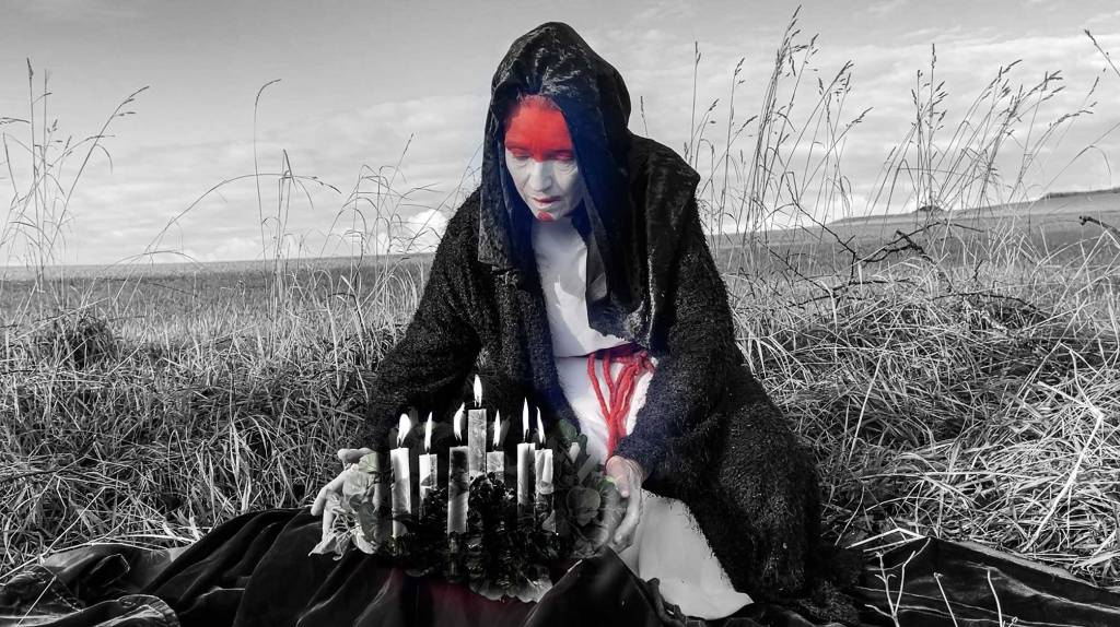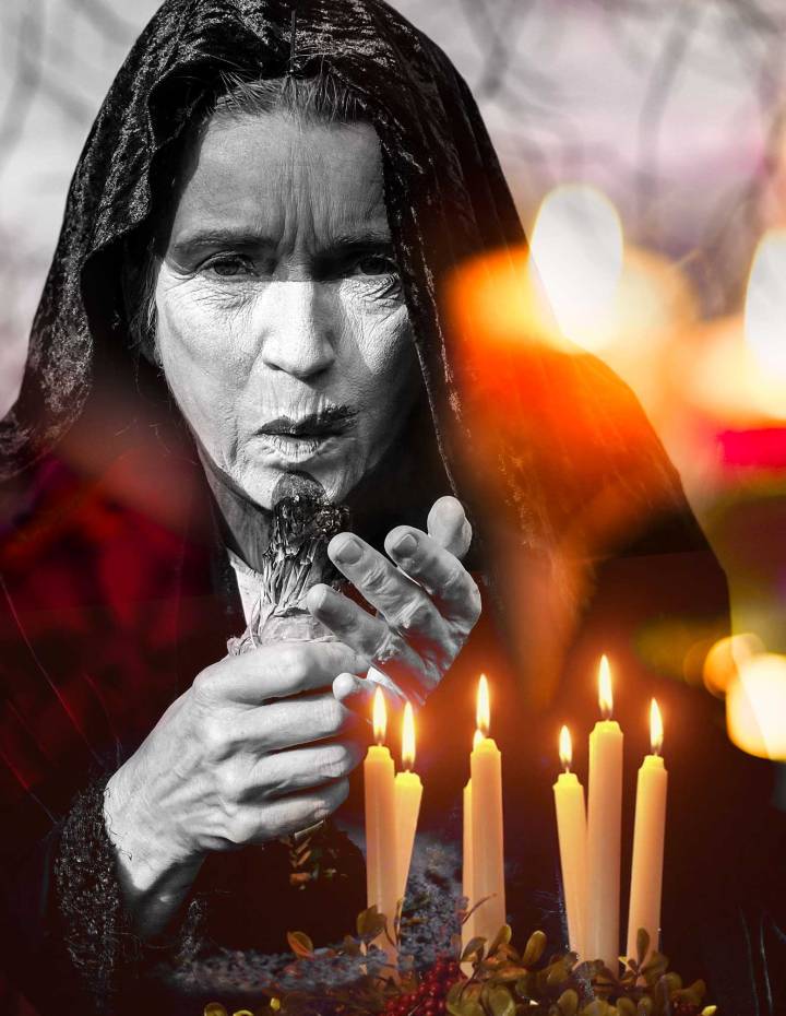 Der rote Gürtel als Zeichen der lichten Lucia ist ein Mondblutgürtel und in ihrem wilden Aspekt ist sie die Alte in der Schwarzmondweisheit. Sie hat, wie die Tödin, etwas, das schneiden kann, ein Messer oder die Mondsichel als Szepter. Sie ist nicht schön, sie ist eindrücklich und auch furchteinflößend, denn sie beleuchtet einen ganz wichtigen Teil unserer Frauenmacht. Und die hängt mit unserem Blut zusammen.