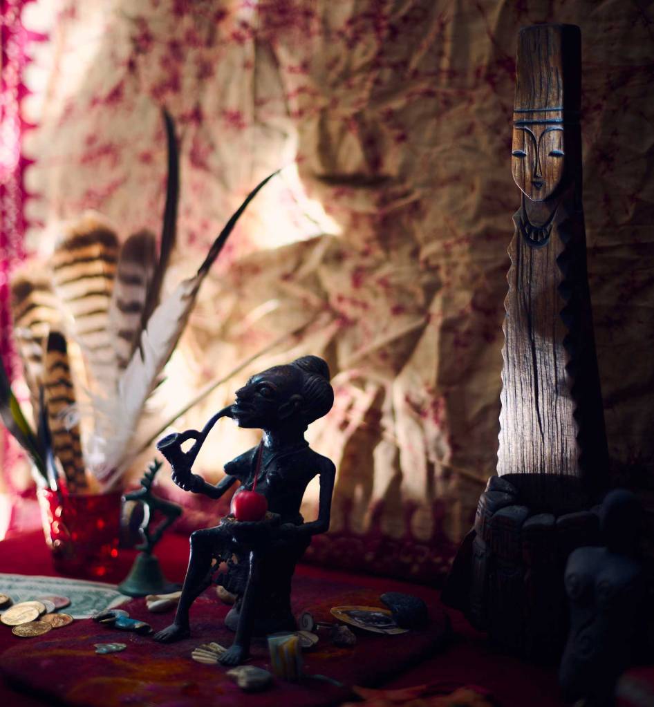 Altäre im Haus, lebendige Orte, sowas wie Türen oder Brücken in andere Ebenen, um uns mit anderen Weisheitsquellen zu verbinden. Schwellenräume, Erinnerräume, Grenzorte. Wenn es ganz stürmisch wird in meinem Leben oder in der Welt, setze ich mich zum Hausaltar und rede mit den Spirits. In Zeiten wie diesen bin ich öfter dort. Ich erzähle ihnen, bitte um Schutz und um hilfreiche Antworten, um ihre Unterstützung und noch so einiges. Das beruhigt mich. Unsere Verbindung schläft manchmal etwas ein und wenn ich sie aktiviere, dann merke ich, wie gut es tut. Kraft tanken, andere Weisheitsquellen spüren, ruhig werden …