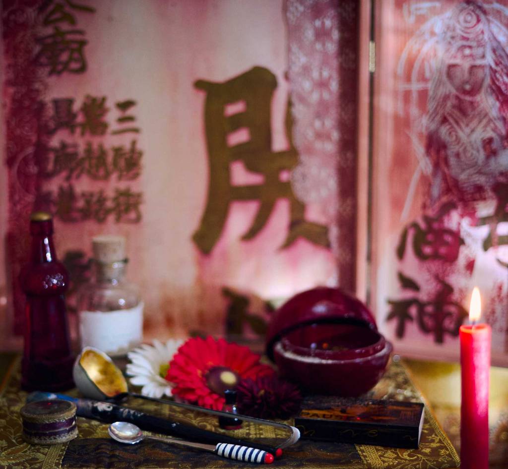 Manchmal sind die Schreine nur streichholzschachtelgroß. In Asien gibt es ja überall Altäre, in Tempeln, in Küchen, Cafés, Restaurantes, an Strassenkreuzungen, in Läden, vor der Haustüre, am Strand … überall. Sie sind Teil des Alltags, Teil des ganz normalen Geschehens. Davon inspiriert, sind jede Menge Altäre entstanden, in der Küche, im Arbeitsraum ein Musenkussaltar, vor der Haustüre ein kleiner Schutzaltar, ein Altar für die Katzen. Elsa findet, das sei der wichtigste überhaupt und er könnte ausgebaut werden. Samt täglichen Offerings von Lieblingsspeisen für Katzen. Sie würde sich bereiterklären, als Abgesandte der Katzengöttin, die Geschenke zu verspeisen. Das ist noch nicht zu Ende diskutiert.