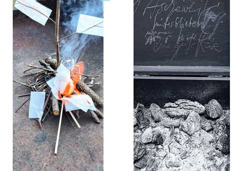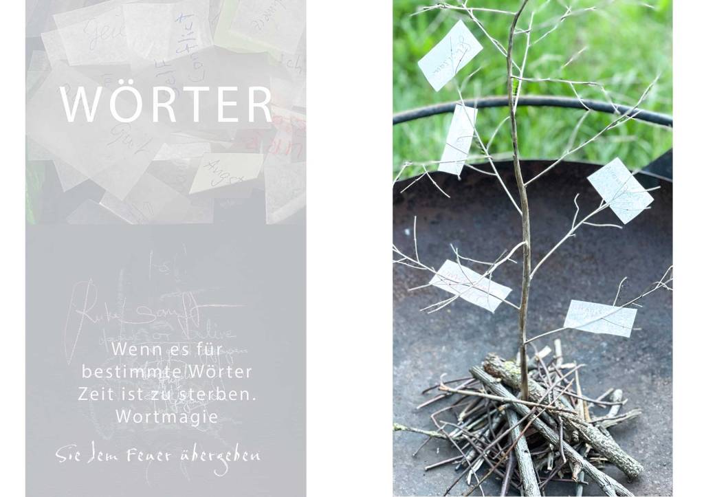 Im Bereich der Wortmagie in der Ausstellung gab es die Wortgruft, für Wörter, die jemand endgültig aus dem eigenen Sprachraum verabschieden will. Ich habe sie dem Feuer übergeben und die Asche den Winden.